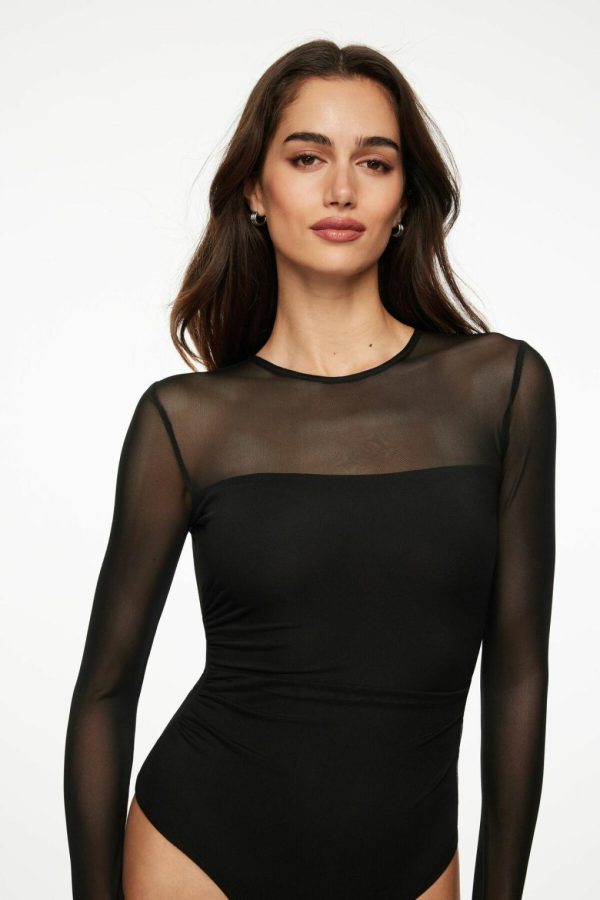 This is an open-back mesh bodysuit – Designed to be fitted with a stretch.