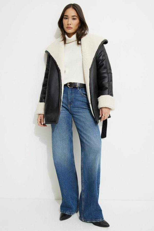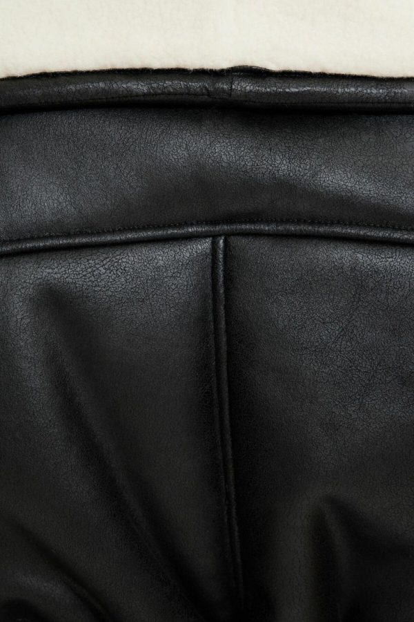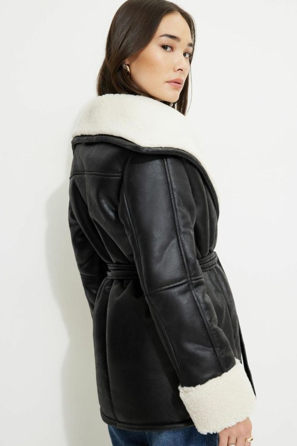 This faux nubuck leather short coat is lined in sherpa to keep you warm and cozy.
