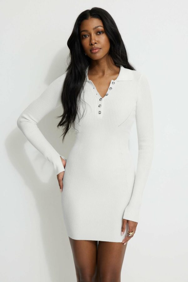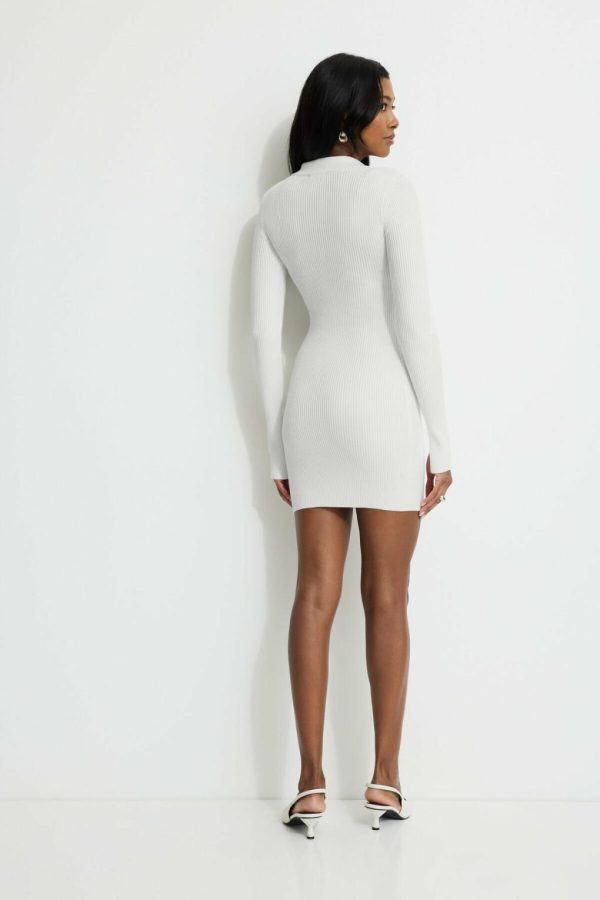 This rib knit mini dress is designed to have a fitted silhouette. Style it with a jacket for an everyday look.