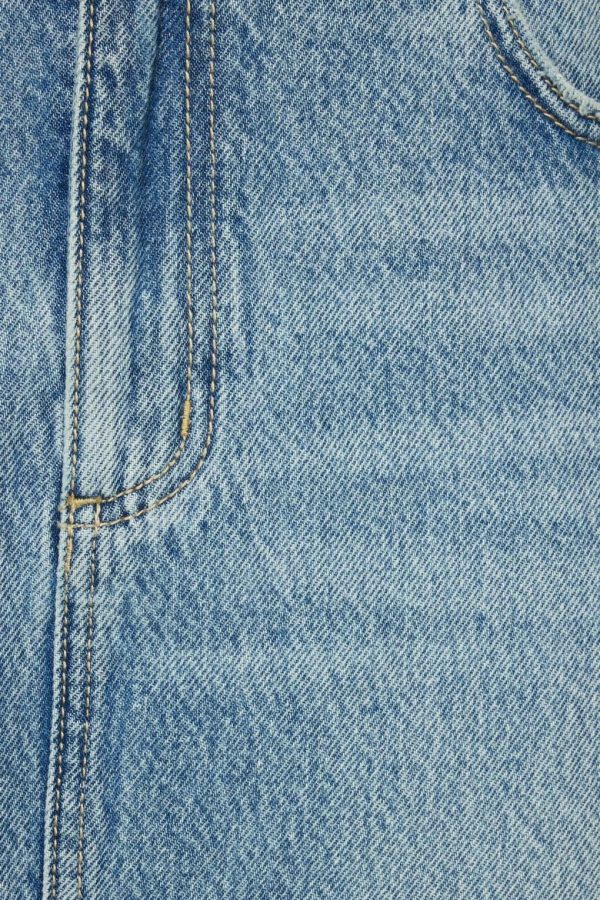 This is a high-rise denim maxi skirt. Made with a front slit.
