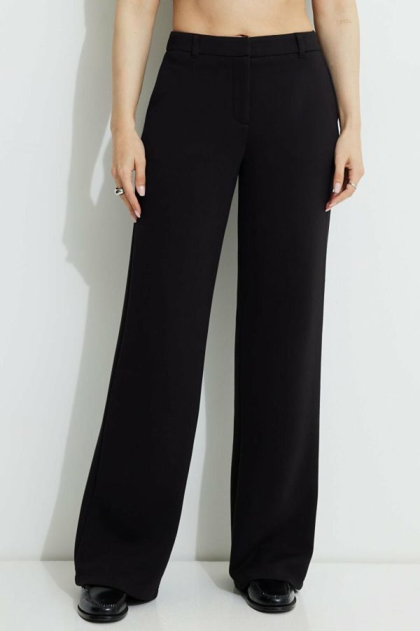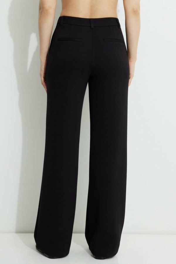 This is a pleated jersey pant made with lightweight scuba fabric, that’s cool to the touch, sleek, and wrinkle-resistant.