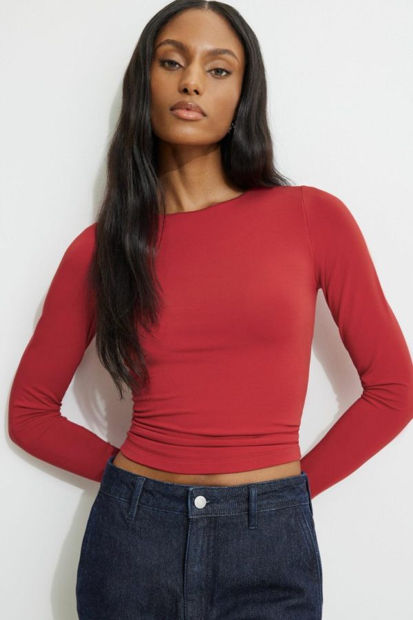 Tops | Women Dynamite Kyla Jersey Long Sleeve T-Shirt Red